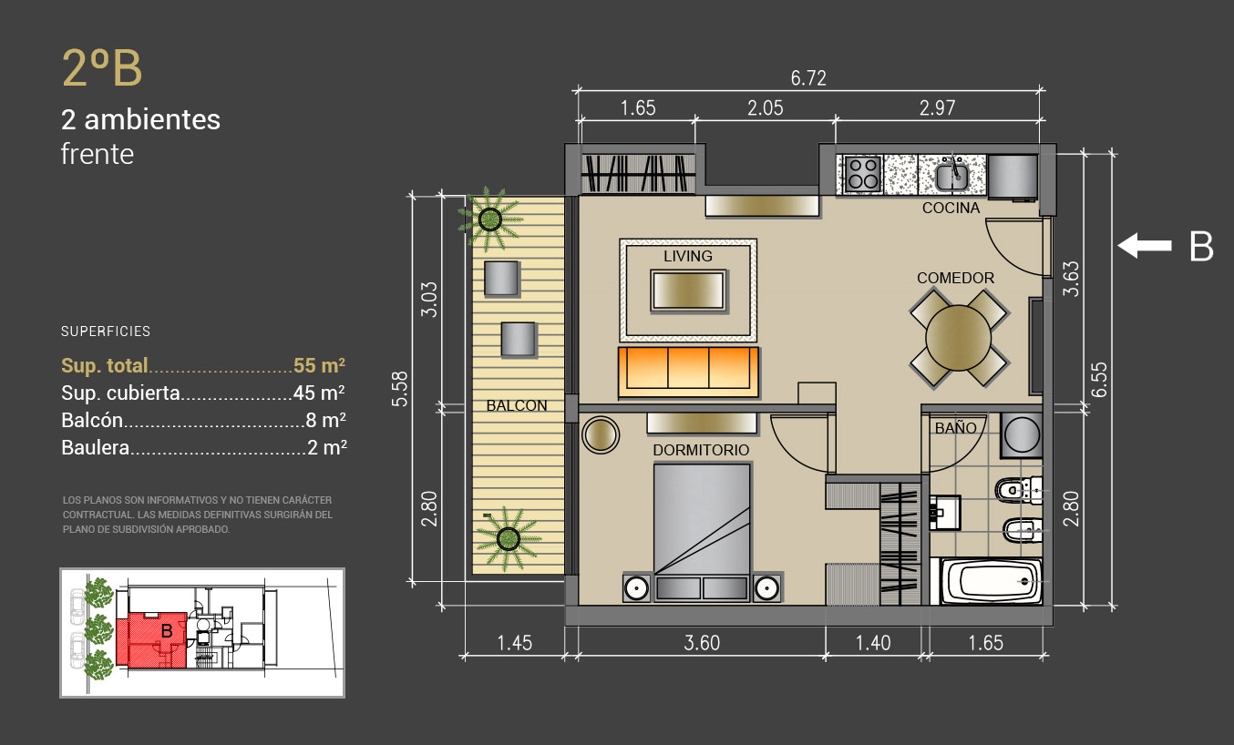 2 amb: 55 mt2