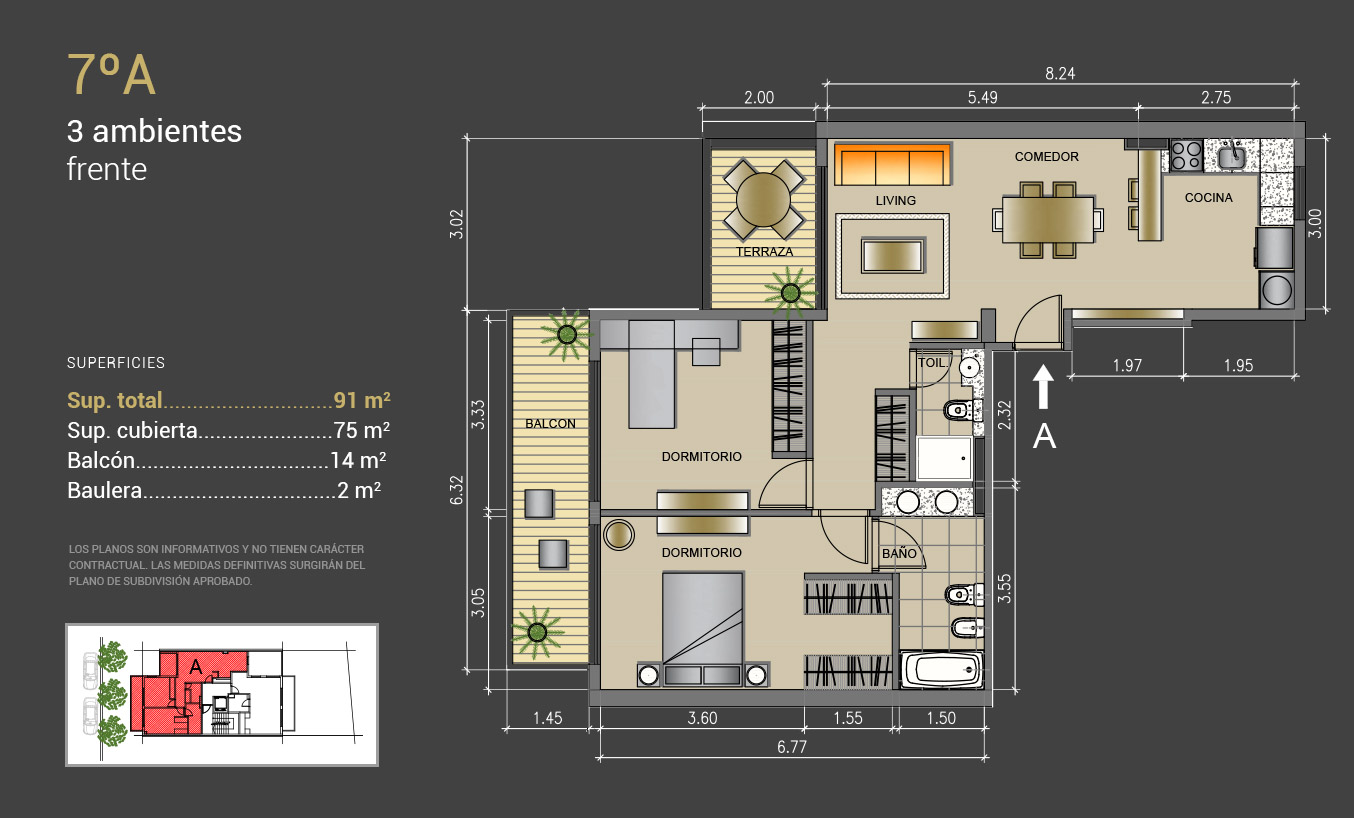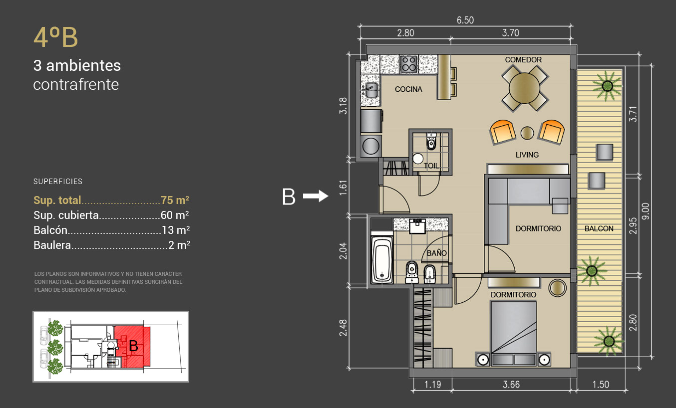 3 amb: 75 mt2