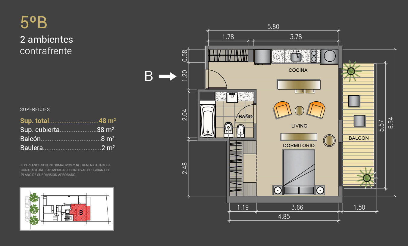 2 amb: 48 mt2