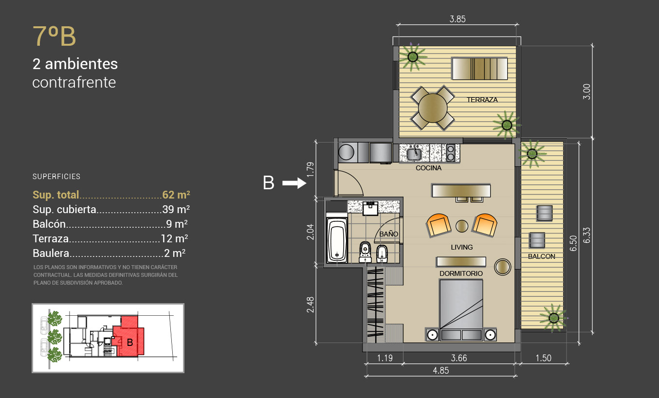 2 amb: 62 mt2
