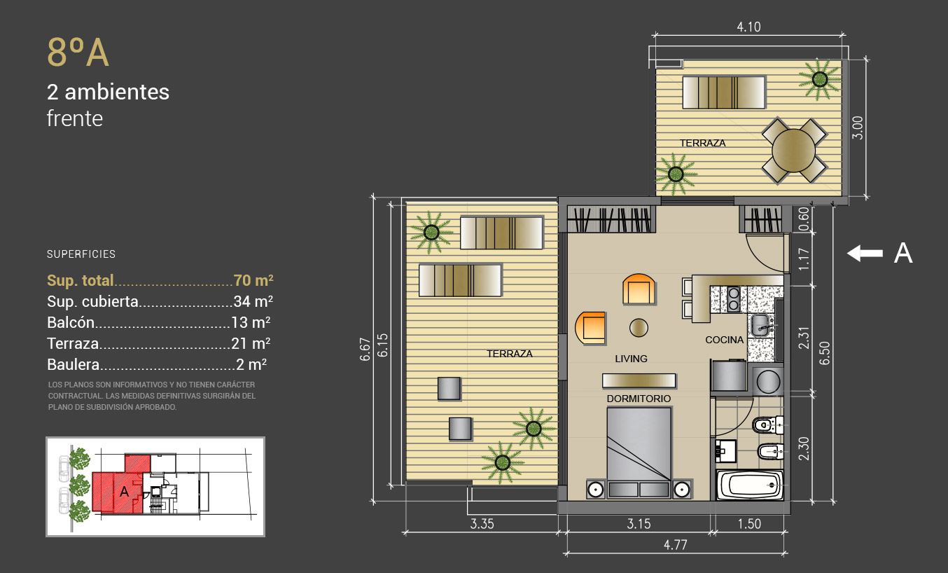 2 amb: 70 mt2