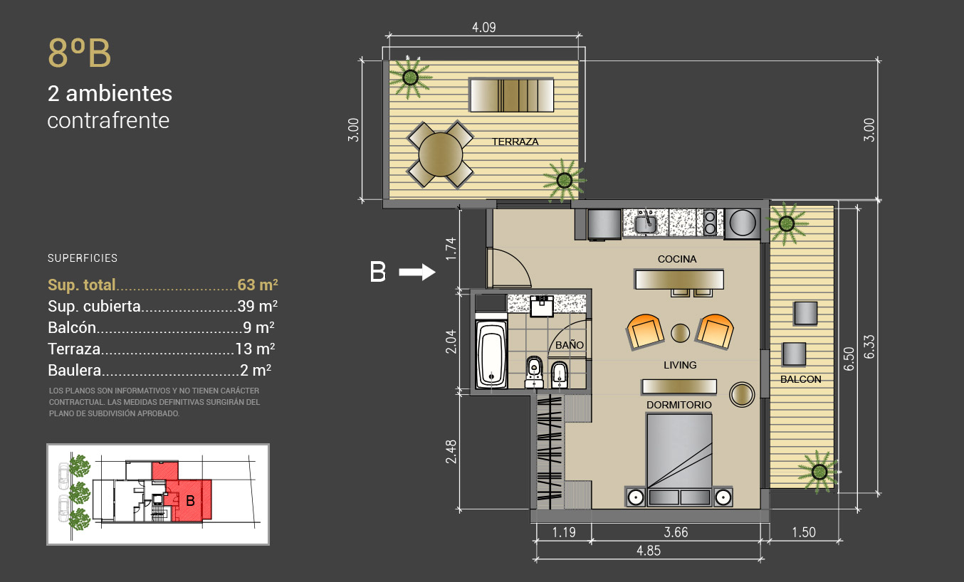 2 amb: 63 mt2